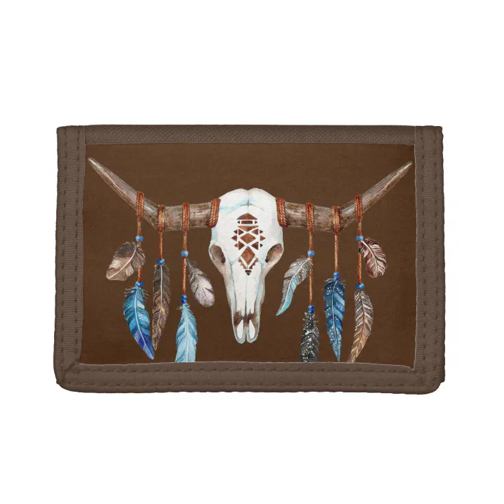 Watercolor Western Cow Skull And Feathers Trifold Wallet Zazzle